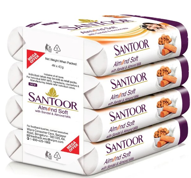 SANTOOR ALMOND SOFT SOAP 4*44GM